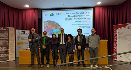 El 30 de enero de 2026 en el Salón de Actos del CITIUS II (Edificio Celestino Mutis), ha tenido lugar la lectura de la Tesis Doctoral de D. Daniel Martín Fernández, titulada “Electrical Stimulation of Neuroblastom Cells: Effects on Differentiation”. La tesis ha sido dirigida por D.ª Paula Daza Navarro, y tutorizada por D. Alberto Yúfera García.