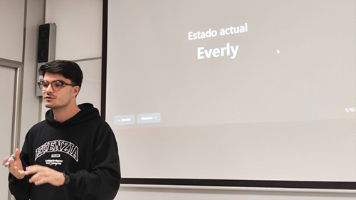El Club de Emprendimiento de nuestra Escuela ha celebrado su primera sesión del año con una jornada centrada en la acción y la metodología real. El evento comenzó con la intervención de D. Pablo Ferrería Hijón, uno de los fundadores del Club, quien presentó las próximas charlas y anunció el próximo lanzamiento del concurso de ideas de la ETSII, donde se entregarán premios a las mejores propuestas. A continuación, contamos con la participación de D. Carlos Navarro Jiménez, fundador de la startup Everly, quien impartió la ponencia titulada “Emprender siendo Ingeniero: Ventaja Competitiva de los perfiles técnicos”. En esta charla, Carlos compartió su trayectoria académica como ingeniero y su experiencia en Fusión Startups, detallando cómo su formación técnica ha sido clave para identificar su nicho de mercado y potenciar el crecimiento de su proyecto empresarial.