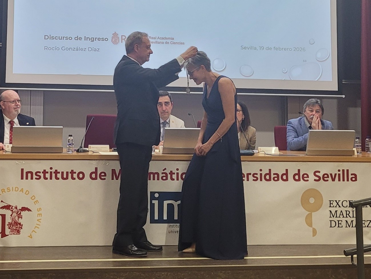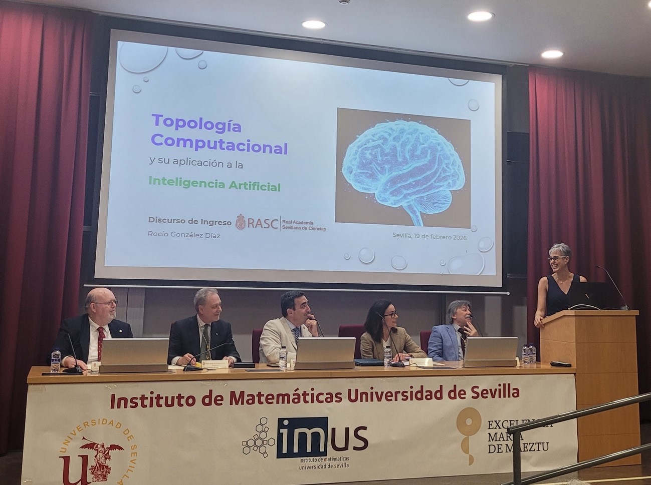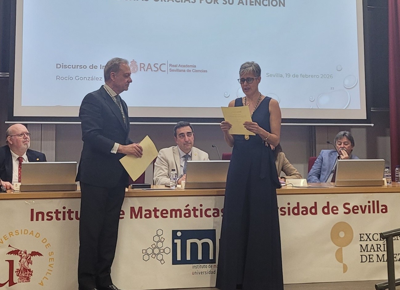 Nuestra compañera, la catedrática D.ª Rocío González Díaz, marca un hito al haber ingresado en la Real Academia Sevillana de Ciencias (RASC) este jueves 19 de febrero. No sólo marca historia por ser la cuarta mujer científica Miembro numerario de la Real Academia Sevillana de Ciencias, sino que es la primera mujer matemática que consigue este honor.