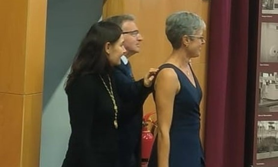 Tras su charla, la ceremonia ha continuado con la imposición de la medalla que distingue a los miembros numerarios de la academia y D.ª Rocío González ha jurado su compromiso institucional. Finalmente, ha sido recibida por los restantes Académicos como nuevo miembro, recibiendo los simbólicos abrazos de cada uno, y ha sido invitada a ocupar su asiento entre ellos.