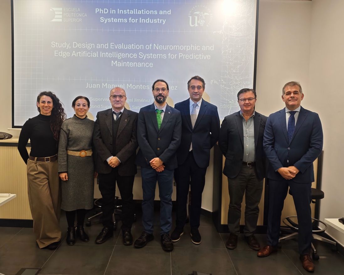 El 23 de enero de 2026 en la Sala Multiusos, ha tenido lugar la lectura de la Tesis Doctoral de D. Juan Manuel Montes Sánchez, titulada “Study, Design and Evaluation of Neuromorphic and Edge Artificial Intelligence Systems for Predictive Maintenance”. La tesis ha sido dirigida por D. Ángel Fco. Jiménez Fernández y D. Saturnino Vicente Díaz, y tutorizada por D. Ángel Fco. Jiménez Fernández.